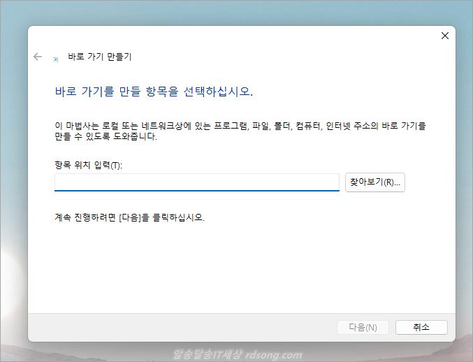 바로가기 만들 항목 선택? 찾아 보기 안눌러도 됩니다.