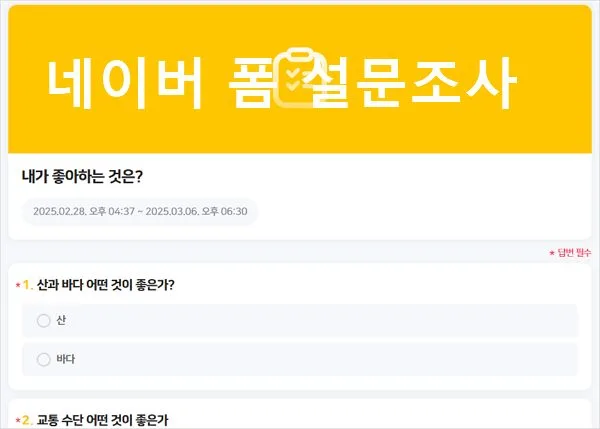 네이버 폼 설문조사 아래처럼 심플한 모습 좋아요!