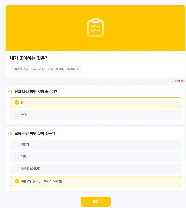 다양한 설문지 샘플 객관식 , 주관식 , 혼합식 골라서 사용 하는 것이 설문지 작성 빠르고 좋습니다.