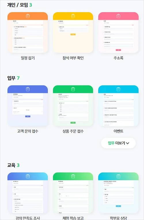 개인 업무 에 따라 , 교육 및 관련 모임 폼 샘플 제공
