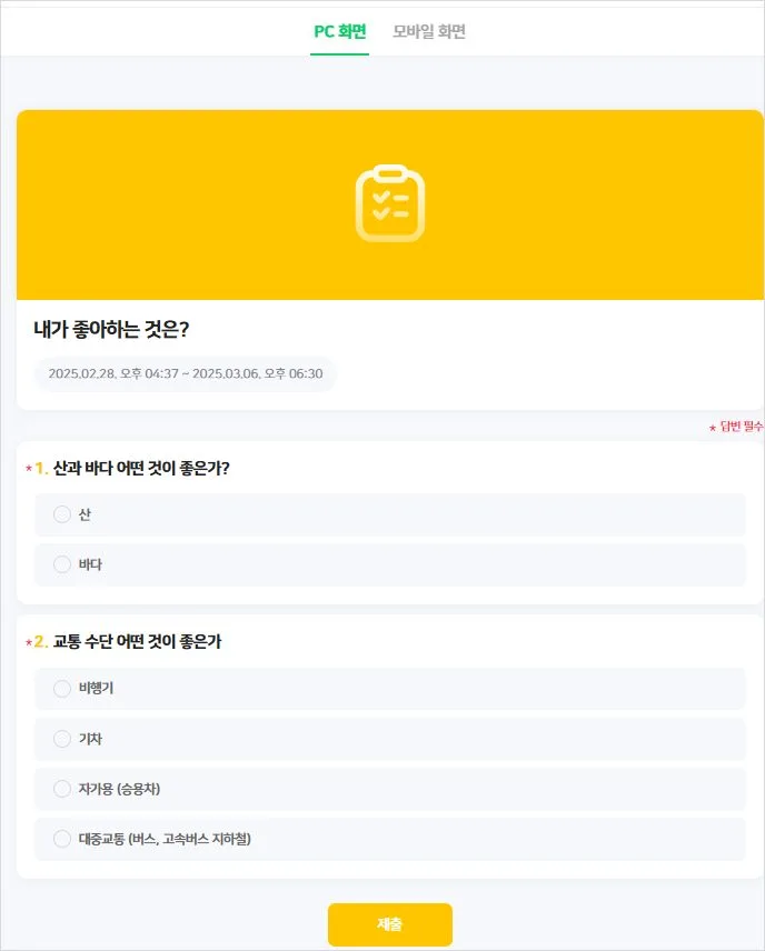 네이버 폼 설문조사 만들기 모두 완료 되었네요 pc 화면 / 모바일 화면 확인