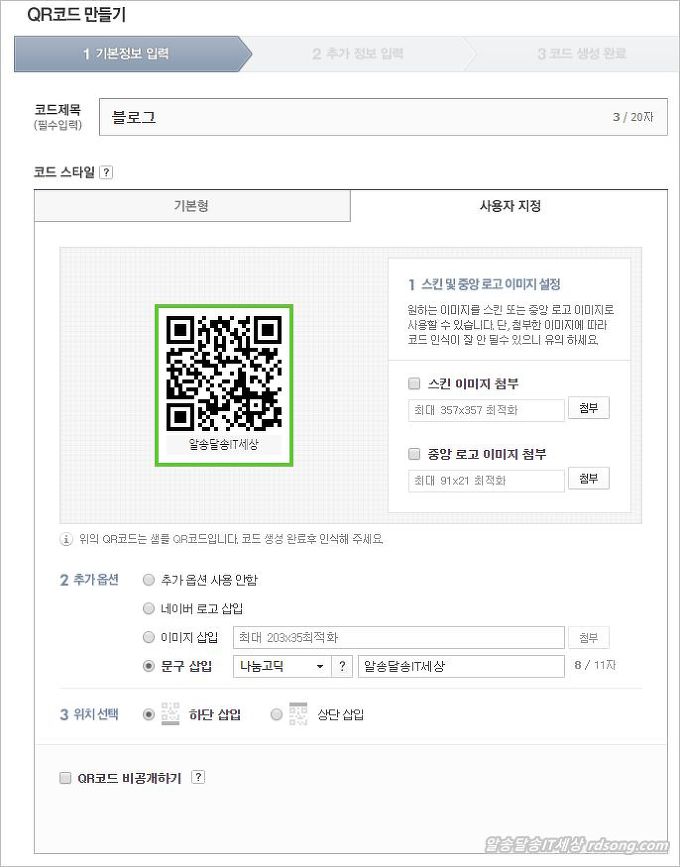 - 문구삽입 : 어떤 qr 코드인지 간략히 입력 하면 좋습니다.