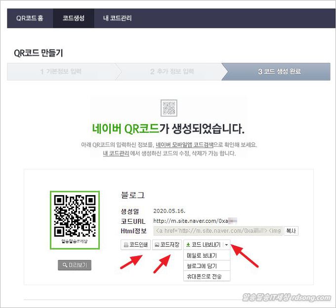 QR코드 URL 링크도 있고 html정보 복사 하여 이용 하면 됩니다.