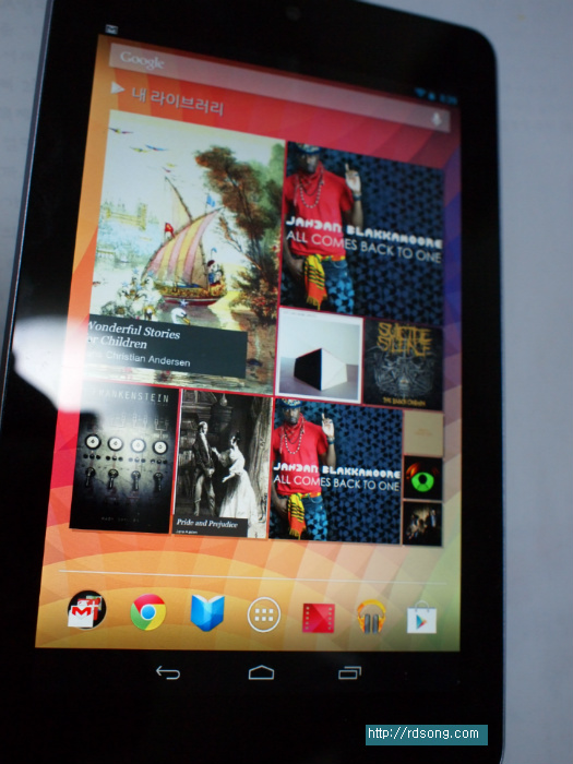 중간에 새사용자를 위한 구글계정을 입력하는 부분과 몇가지는 skip 했고…..넥서스7 처음에 설정할때와 같으며…. 설정이 완료된 상태입니다