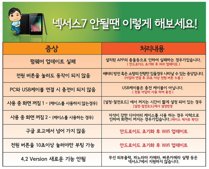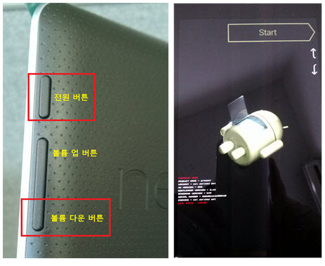 펌웨어 올리다가 실패 또는 펌웨어 올린 후 작동이 잘 안될때, 전원버튼 작동 안될 때, 충전 안될때, 사용중 화면이 꺼질때,넥서스7 부팅이 되지 않고 로고에서 멈출 때,