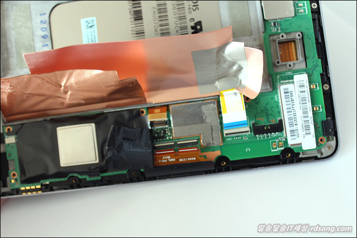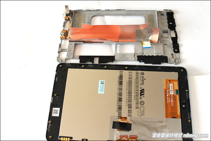 이리하여 결국 넥서스7 LCD패널을 못쓰게 된 상황 제기럴~ 사진으로 확인하기는 애매한데 위 오른쪽 LCD의 맨위 상단 유리까지 함께 분리가 되어 결국 못쓰게 되었다능  헐~