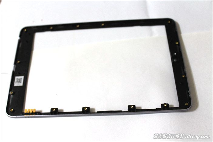 그안에 플라스틱 프레임 분리하고 나면 , 터치패널유리와 버젤 + LCD패널이 함께 붙어 있습니다