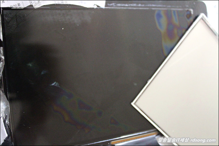 그런데..여기서 사건이 발생되었는데 LCD패널과 깨진 터치유리를 분리 할때 그만 LCD패널의 겉유리까지 함께 순간 분리가 되어 말이죠 젠장~ 아주 조심스럽게 드라이기로 열을 가하면서 말이죠