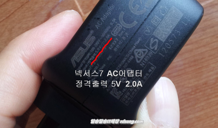 넥서스7 충전시 최소한 5V 2A (2000mA) 출력 : usb 컨넥터에 태블릿용 usb 케이블을 이용