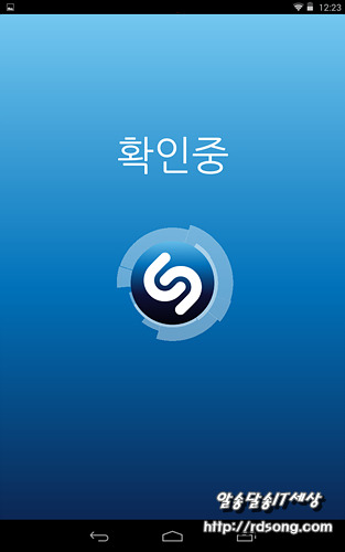shazam 을 어플을 띄우면 터치로 확인을 하면 …확인중이라고 뜨며서 가요 제목을 찾아 줍니다 심플한 스타일이죠