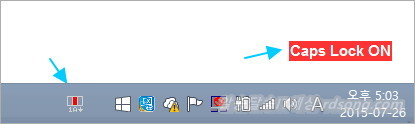 유틸리티 프로그램 설치하여 바탕화면 하단에 cap lock 눌림표시 보이도록 설치하는 방식 프로그램 있습니다
