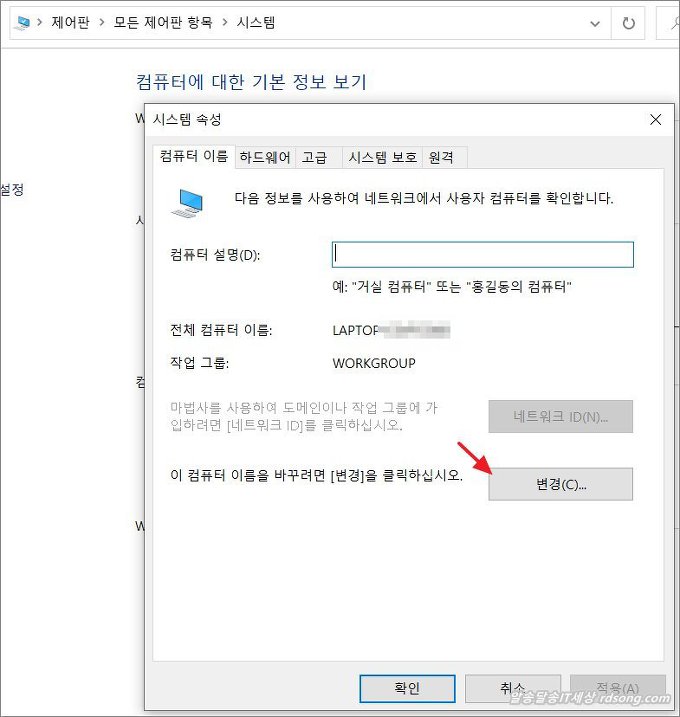 컴퓨터 이름 변경 해도 되고 그냥 사용해도 되는데 아무래도 친숙한 네이밍으로 컴퓨터 이름 변경 해 주는 것이 좋습니다.