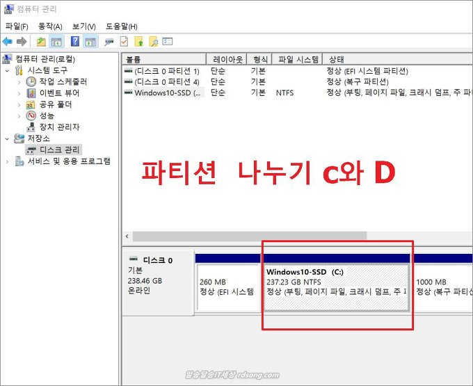 윈도우10 파티션 분할 , 윈도우10 파티션 나누기 D: 드라이브 만들기