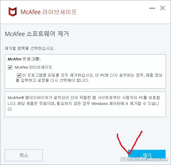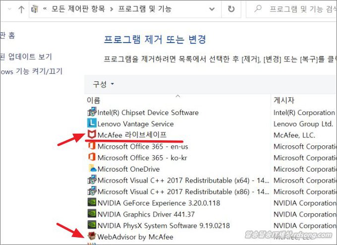 난 이런 McAfee 라이브세이브 필요 없으니 삭제 합니다.