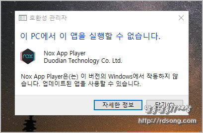 nox app player 는 이버젼의 windows 에서 작동하지 않습니다라고 메시지를 띄운다