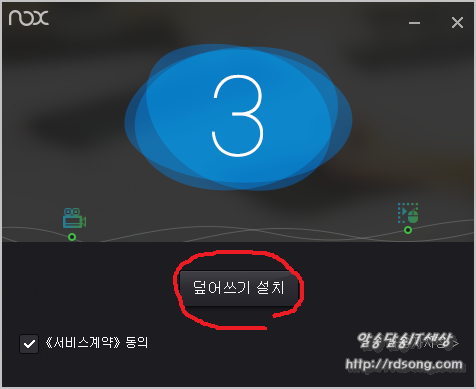 새로운 녹스앱플레이어 설치 파일을 받아 다시 덮어쓰기로 설치
