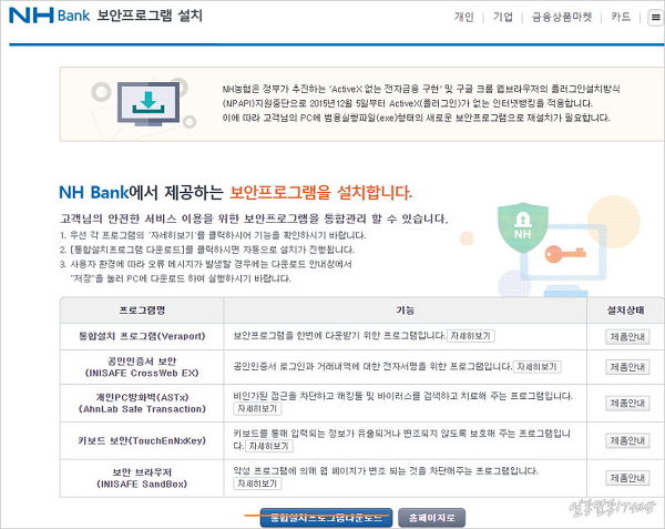 뭐 액티브엑스 없는 환경이라고 하지만, 하여튼 보안 프로그램을 모두 설치를 하고 사용해야