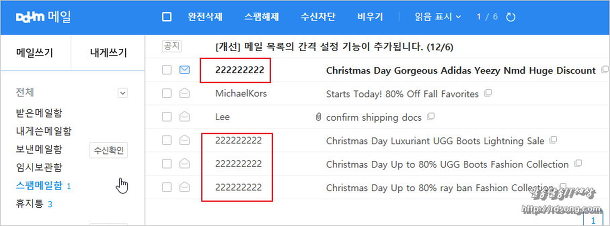 다음메일이 새롭게 바뀌었다 그런데 여전히 스팸메일이 진화하여 동일한 곳에서 계속오고 있다 보내는이의 도메인 메일주소를 바꿔 가면서 말이다