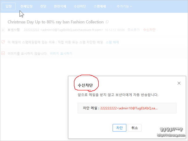 수신차단 하고 자동반송 한다고 한들 아무 소용이 없다 또 보낸이 메일주소를 바꿔가면서 보낼텐데….!