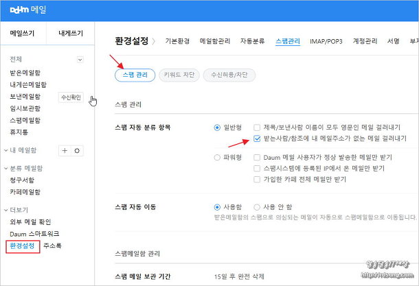 ![다음메일 환경설정하여 스팸메일을 막아 보자 [Daum 메일스팸 수신허용/차단하기]](https://rdsong.com/wp-content/uploads/2016/12/%EB%8B%A4%EC%9D%8C%EB%A9%94%EC%9D%BC-%EC%8A%A4%ED%8C%B8%EC%B0%A8%EB%8B%A8-%ED%99%98%EA%B2%BD%EC%84%A4%EC%A0%951.jpg)