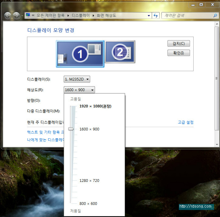 컴퓨터 바탕화면에서 마우스 우측을 누르거나, 또는 제어판의 디스플레이 설정으로 갑니다 또는 그래픽카드를 설정하는 별도의 프로그램에서 설정해도 됩니다 편한 방식 아무거나 골라서..쓰면 됩니다