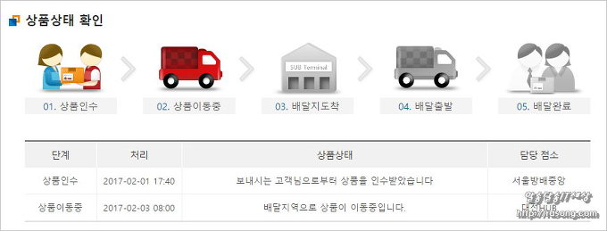 네이버 홈피나 다음daum 홈페이지에서 송장번호로 택배조회를 해 보면 됩니다