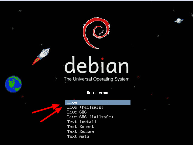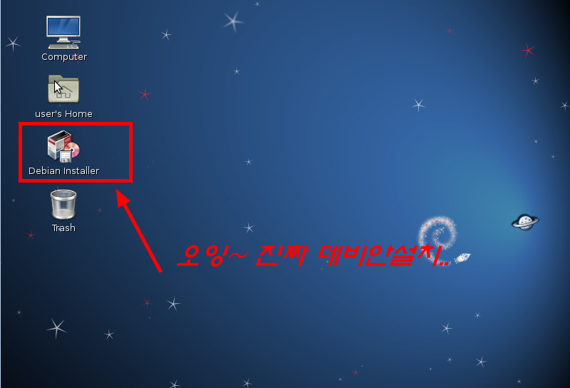 라이브 부팅 하면 아래처럼 데비안이 설치된 화면이 나타납니다