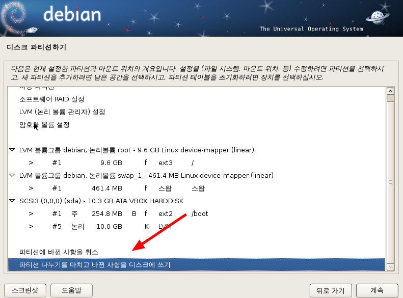 혹시 데이안 리눅스 6.0.3 설치할 때 참고 하시면 되겠습니다 , 참고로 버추얼 가상화, 버추얼박스로 설치한 거라
