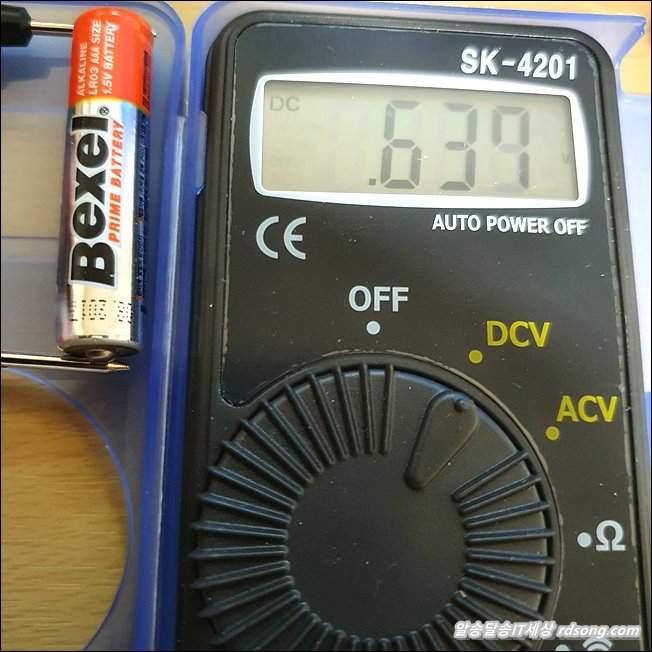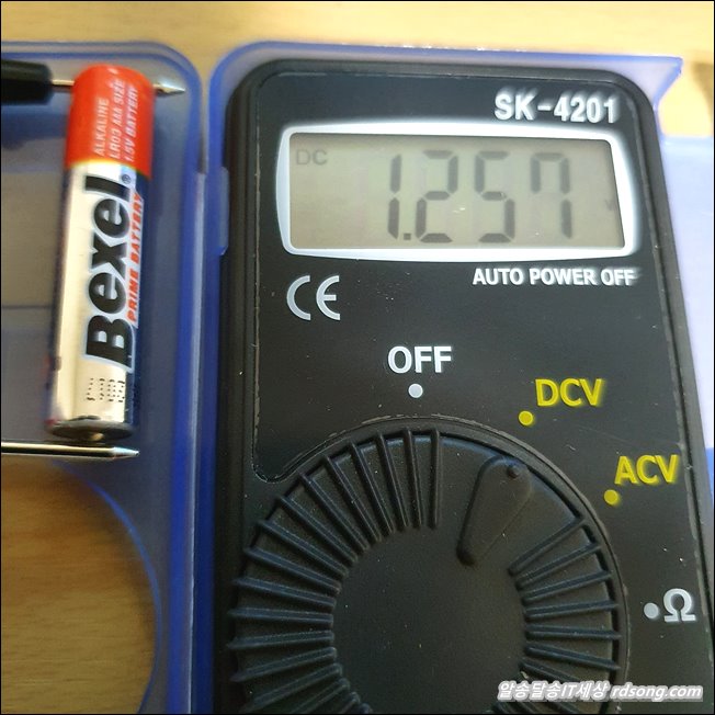 1.5V 건전지 인데 1.2V 정도 남아 있는 상태 입니다. 다른 충전용 건전지 측정 해 보니 비슷.