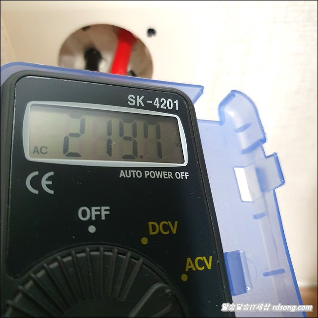 집에 들어오는 전기 몇 볼트 인지 측정 해 보니 219V 측정 됩니다. 220V 정상이지만 이보다 적은 수치로 보통 나옵니다.