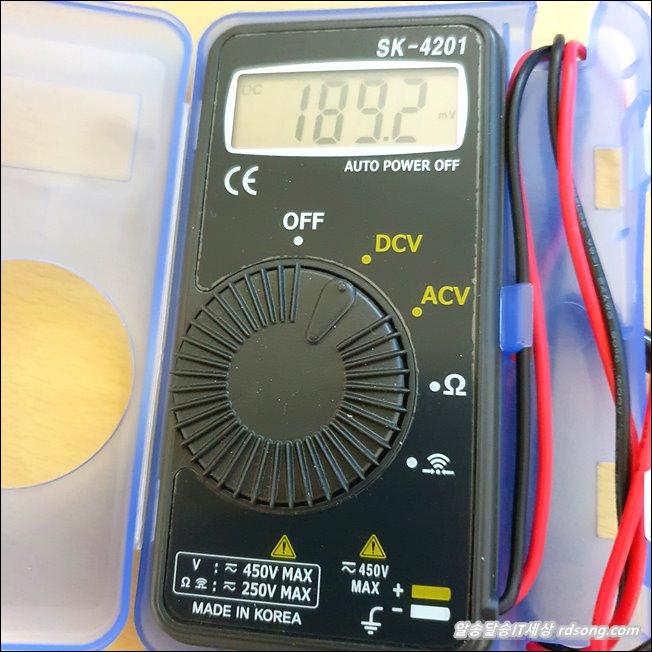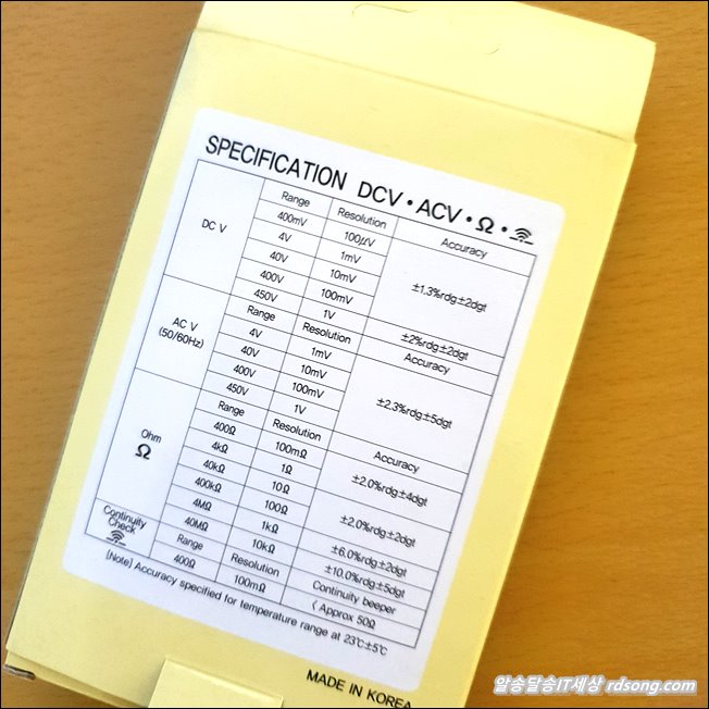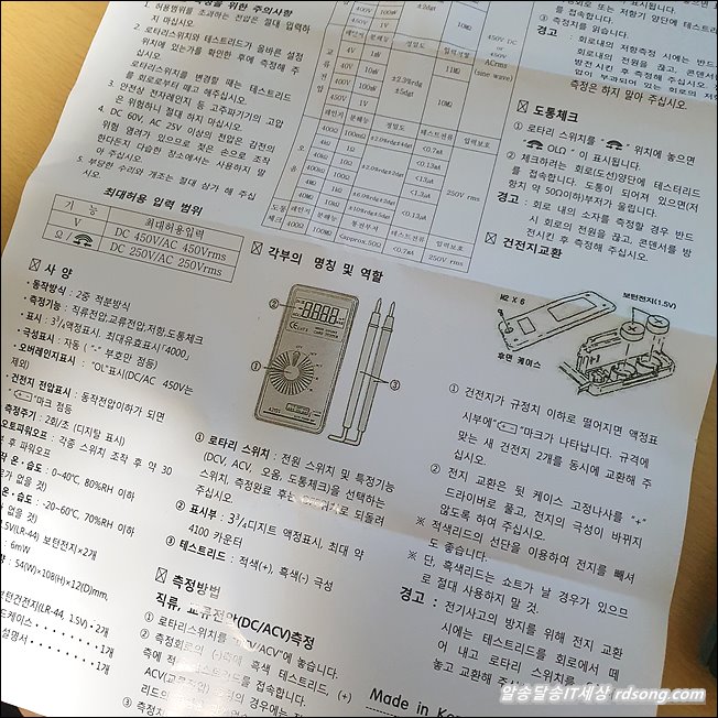 디지털 테스터기 측정 최대 허용 범위 있는데, 이제품은 DC 450V AC 450V 까지 사용해야 합니다. 가정용으로 쓰는 것이므로 이상 넘어서 측정될 일은 없겠습니다.