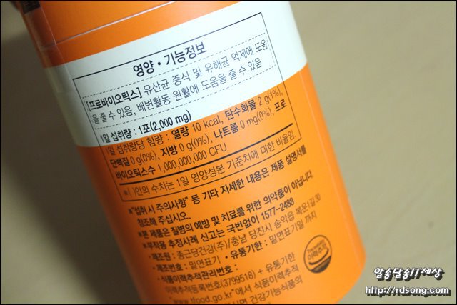 유산균 증식 및 유해균 억제에 도움을 줄수 있다 라고 적혀 있다 프로바이오틱수 1,000,000,000 CFU