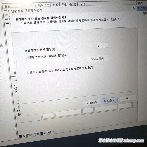 드라이브 문자 할당 E 선택 했습니다.
