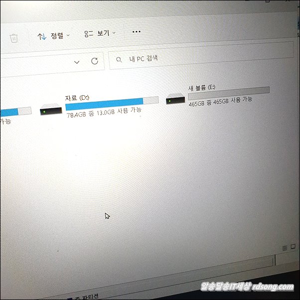 내PC 또는 탐색기 열어 보면 새볼륨 D 바뀐 것을볼수 있습니다.