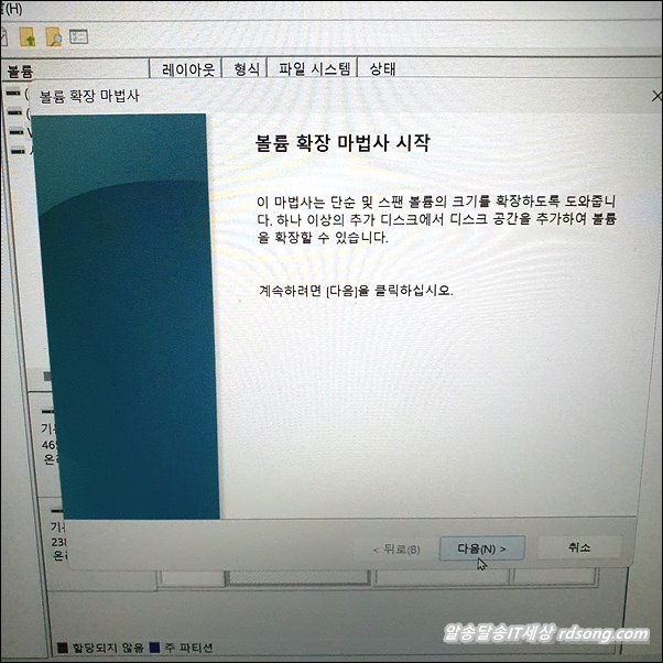 볼륨 확장 마법사 시작 , 다음 진행 합니다.