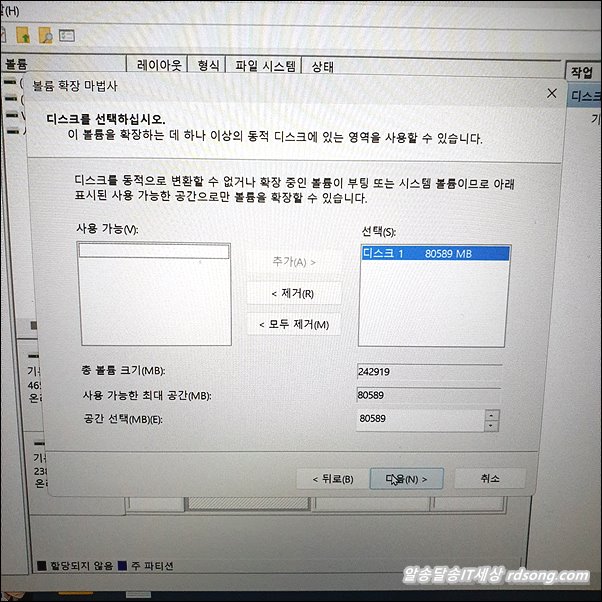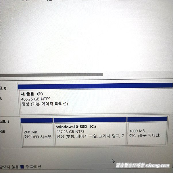 디스크 관리 화면으로 돌아 옵니다. (아래 )