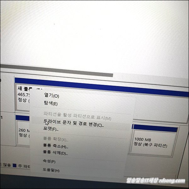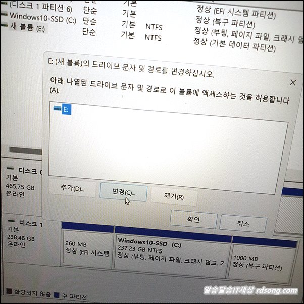 마우스 우측 눌러 줍니다. 드라이브 문자 및 경로 변경 선택 합니다.