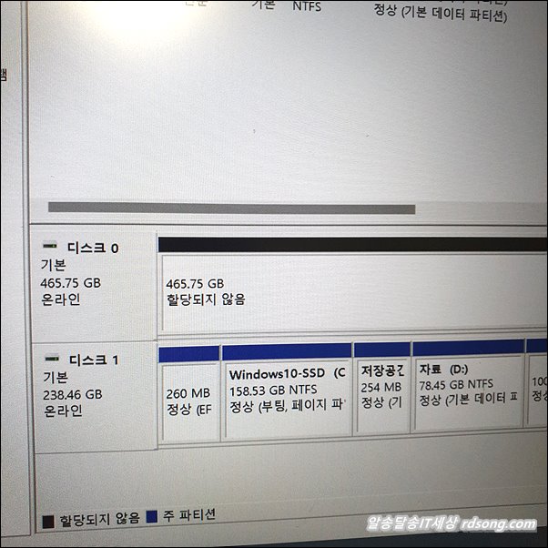 새로 장착한 SSD : 디스크 0