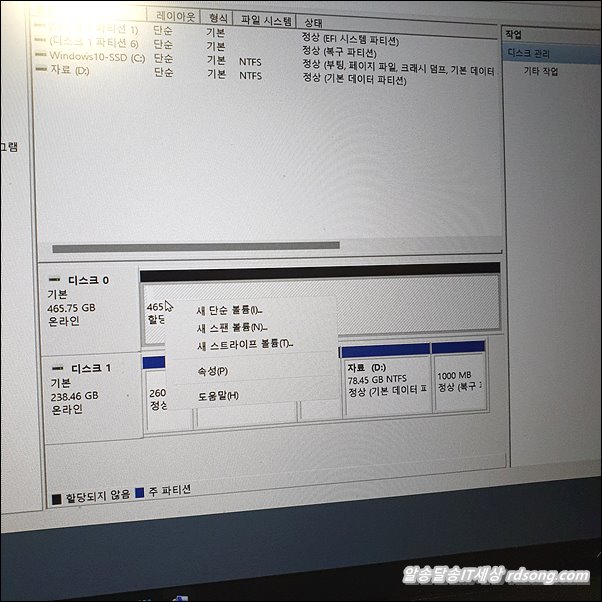 마우스 우측 눌러 [ 새 단순 볼륨 ] 선택 합니다.