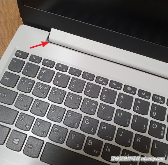노트북 전원 버튼은 키보드 상단의 맨우측에 위치 해 있습니다. 숫자 키패드 우측에 있습니다