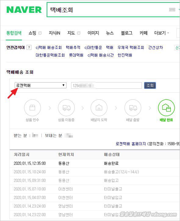네이버 홈에서 송장번호 입력하여 조회 해 봤는데 ..그런데 조회가 됩니다!