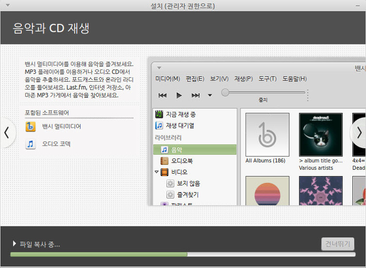 리눅스 민트 하모니카 17 를 설치하면 관리자 권한으로 설치가 된다