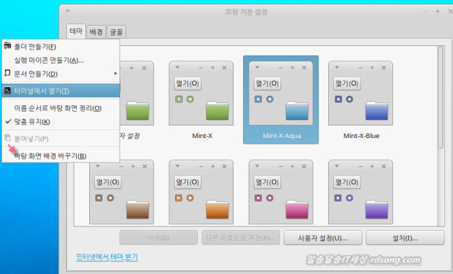 민트 바탕화면 테마, 바탕화면 배경 / 글꼴 바꾸려면,