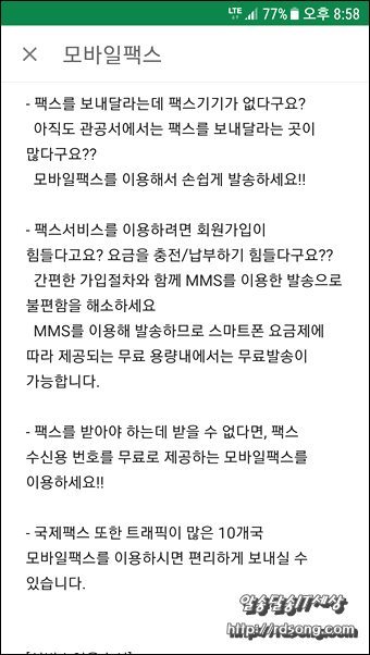 얼마전에 급한 일로 스마트폰으로 바로 모바일 팩스로 전송 했습니다