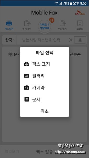 스마트폰에서 쉽게 사진파일을 팩스 보낼 수 있는 안드로이드 어플