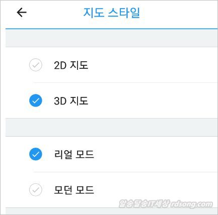 리얼모드 모던모드에 따라 지도의 도로 색상이 약간씩 차이가 있는데 개인 취향에 따라 골라 쓰면 됩니다 개인적으로다가 리얼모드 씁니다.