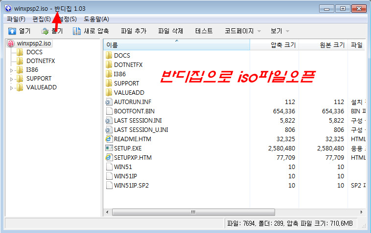 반디집에 iso 파일 이미지 링크가 연결되어 이걸로 오픈이 되고 모든 파일이 정상적으로 나타납니다