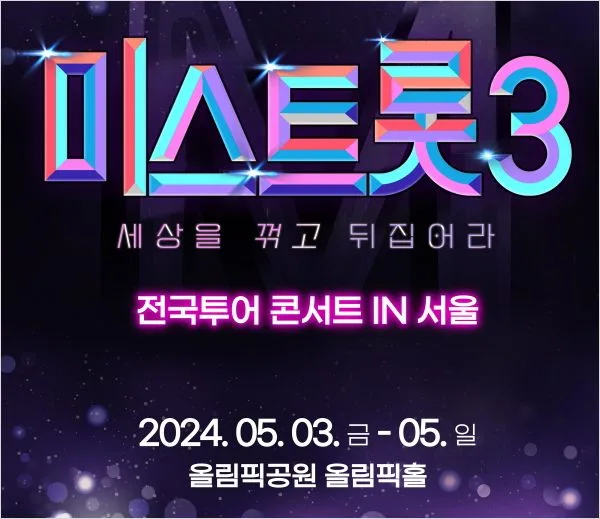미스트롯3 티켓 예매 하세요. 노래 꺽고 세상도 뒤집고, 티켓 다 팔리기 전에 빨리 서두르세요
