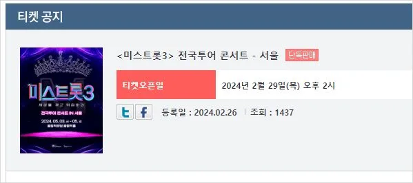 미스트롯3 티켓 예매 빨리 하시면 됩니다. 늦으면 다 팔립니다