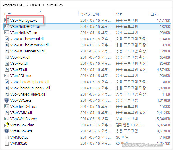 윈도우에서 버추얼박스(virtualbox)가 설치된 폴더에서, c:program filesoracleVirtualbox